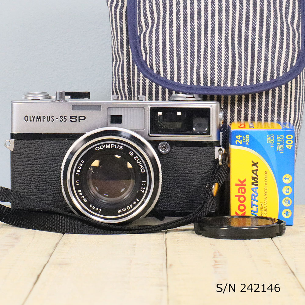 | [OLYMPUS 35 SP] 昭和レトロなフィルムカメラです。 ○OLYMPUS 35 SPについて○ OLYMPUS 35 SPは1969年(50年以上前!!)に発売されたフィルムカメラです。 レンズシャッター機として、スポット測光、平均測光の2種類の測光をはじめて可能にしたカメラです。名前の「SP」はスポット測光の略。プログラムAEでも、マニュアルでも使用可能なカメラです。 レンズは高級レンズF.ZUIKOの大口径42mm F1.7レンズを装着しています。 また、ピント合わせは本格的な二重像合致式を採用しています。 ピント合わせの正確さと相まって、プロも愛用した名作カメラです。 ○特徴○ ・レトロでかわいい外観!!! ・プログラム自動露出、マニュアル撮影も出来る。 ・フィルムは普通のフィルム(35mmフィルム)を使用します。 ・ピント合わせは、二重像合致式 |