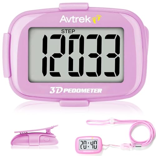 AVTREK 正確な 3D ステップカウンター ウォーキング用 ジャンボスクリーン番号歩数計 クリップオンでランニング用 時間表示と LED バ