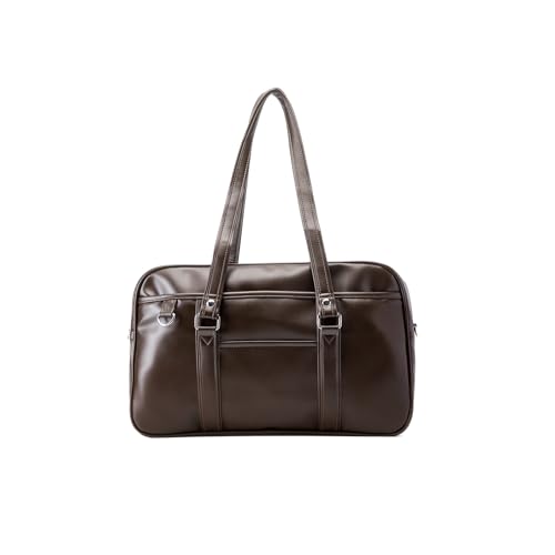 [jinghuiyue] スクールバッグ 高校生 女子 通学 ボストンバッグ 合皮 大容量 軽量 男女兼用 肩紐長いコーヒー