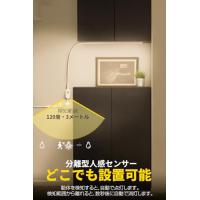 ・分離型人感センサーセンサーがライトと別体なので、どこでも設置。120度以内で3メートル以内の動体検知してライトが自動的に点灯し、数秒後に動体が検知されない場合は自動で消灯します。
