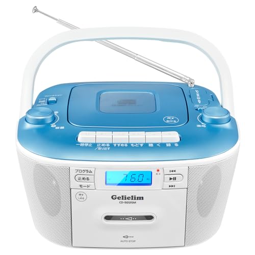 Gelielim CDラジカセ CDプレーヤ FM/AMラジカセ CD/SD/USB/MP3/AUX カセット対応 レコーダー ポータブル カセ