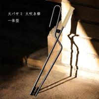 huanbush 火バサミ 火吹き棒 一体型 コンパクト 薪ばさみ 軽量 火起こし 焚き火 トング ファイヤープレーストング ミニ 炭ばさみ 天