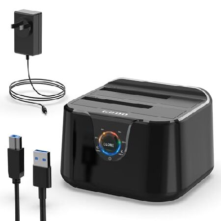 並行輸入 GODO USB 3.0 - SATA III ミニ デュアルベイ 外付けハードドライブ ドッキングステーション 2.5/3.5インチ HDD SSD用 オフラインクローン、ホットプラ
