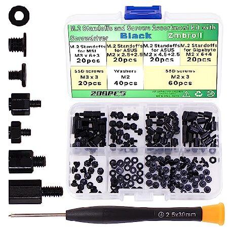 並行輸入 Zmbroll 200枚のM.2ネジセット、黒のM 2 SSD取り付けネジ、ノートパソコンのNVMeネジ、ASUSTeK Gigabyte MSIマザーボードのM.2ホルダーとネジドライバ