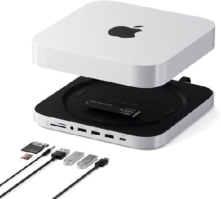 並行輸入 Satechi USB-C スタンドハブ NVMe/SATA SSDスロット (Mac Mini M2 /M1, Mac Studio対応) USB-Cデータポート(10Gbps), Micro/SDカードスロット, USB-A(1