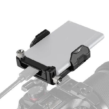 説明: This Universal SSD Drive Holder allows you to mount various styles of Solid State Drives to your camera cage in order to record externally. The adjustable 1/4″-20 mounting screw provides more flexibility in terms of where you can mount your drive on your cage. The integrated cable clamp ensures a secure connect between the cable and drive which will prevent accidental disconnections. Compatible with most of our camera cages and many SSDs such as Samsung T5/T7 and SanDisk E61/E81.