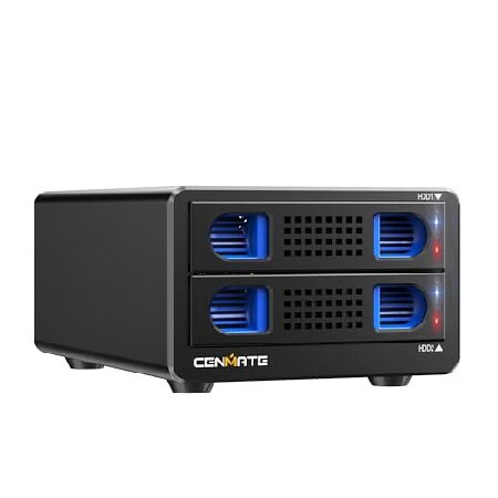 説明: CENMATE アルミニウムデュアルベイハードドライブエンクロージャ 冷却ファン付き 2.5インチ/3.5インチ SATA HDD/SSD USB A/C 3.0付き 工具不要 HDDエンクロージャー (RAID/NASなし)