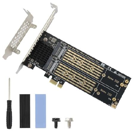 ・【Product Information】Compatibility: Support PCIe X1/X4/X8/X16 slots. Suitable for M.2 NVMe M-Key and M+B Key SSDs. Data Transfer Speed: 5Gbps. Packing List: 1 x PCIe M.2 expansion card, 1 x long baffle, 1 x short baffle, 2 x screws, 2 x heat sinks and 1 x screwdriver.