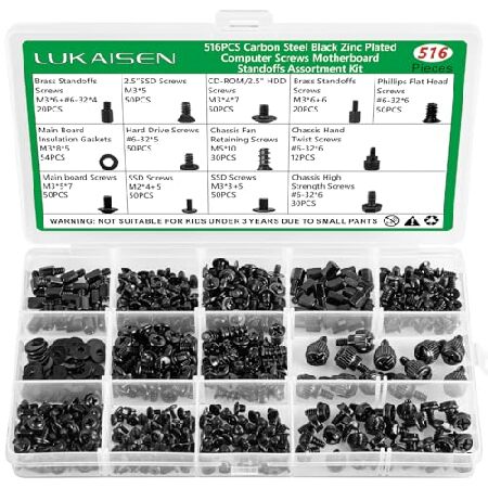 ・【最高のコンビネーションセット】? LuKaiSenコンピュータースクリューキットには、516個のコンピューターネジとガスケットが含まれます(シャーシファンスクリューキット、シャーシスクリューキット、ハードドライブスクリューキット、スタンドオフスクリューキット、CD-ROMスクリューキット、2.5インチSSDスクリューキット、シャーシハンドツイストスクリューキット、メインボードスクリューキット、断熱ガスケット)。 完全に再設計されているため、必要なツールがすべて揃っています。必要のないツールはありません。