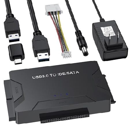 説明: ハードドライブリーダー USB 3.0 & Type C to IDE SATAアダプター、内部データ転送リカバリコンバーターキット 2.5インチ/3.5インチSATA/IDE HDD SSDハードドライブディスク内蔵ブルーレイドライブ用 12V/2A電源付き
