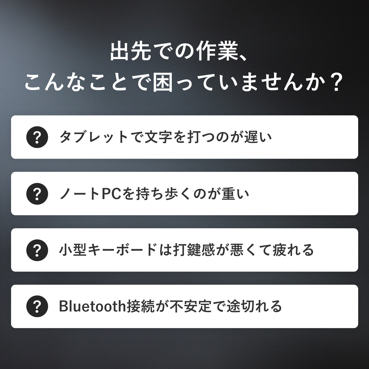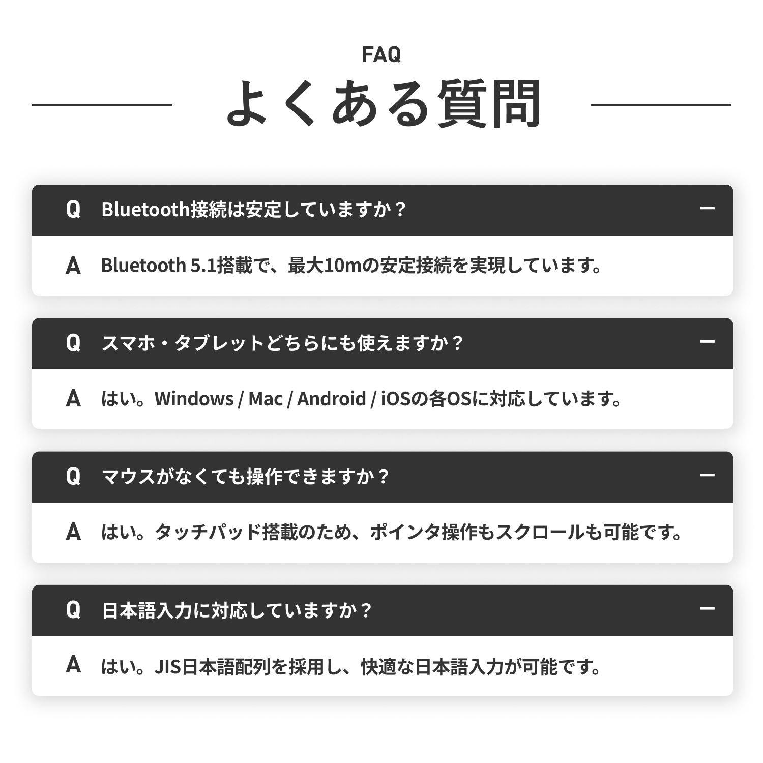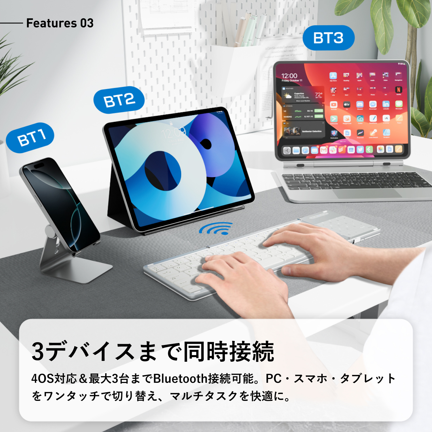 | ■シュリンク加工のPUレザー、シボが生み出す高級感溢れる/レザー調でビジネスに最適 ■折り畳み式で軽量、コンパクト、バッグやポケットに入れて持ち運べる便利なサイズ ■Bluetooth5.1仕様で高速で安定した接続が実現できる ■タッチパッド&テンキー搭載、一般のパソコンのような使い方ができる。 ■最大3台まで同時接続。Bluetoothマルチペアリング機能で、PC、タブレット、スマホなどと同時に接続して切り替えて使用できる。 ■優れた互換性:Windows、Mac、Android、iOSに対応で、様々な機器でご使用いただける。 ■パンダグラフキータイプと狭くないキーピッチでまるでノートパソコンのような静かで心地良いタイピングができる。 ■日本語配列で日本人の習慣に合っていて、使用に違和感なく、誤入力が軽減される。 ■静かな打鍵感で、自宅/オフィス/出張先だけでなく、図書館、カフェなどの公共施設でも周囲を気にせず使えます。 ●注意事項● ※商品到着後、商品に不具合があった場合は7日以内に弊社サポート窓口まで御連絡ください。 ※他製品との併用による不具合は保証対象外となります。 ※本製品を使用中にデータの損失、破損が生じた場合の保証は致し兼ねますので予めご了承ください。 ※製造ロットにより、細部形状の違いなどに多少の誤差が生じます。 ※本製品を使用した事による、直接的もしくは間接的に生じた損害・破損(データを含む)については弊社では責任を負いかねます。 ※輸入の関係上、パッケージにダメージ(擦り傷・凹み・破れ等)がある場合がございます。予めご了承ください。 ※モニターの発色の具合によって実際のものと色が異なる場合がございます。あらかじめご了承ください。 |