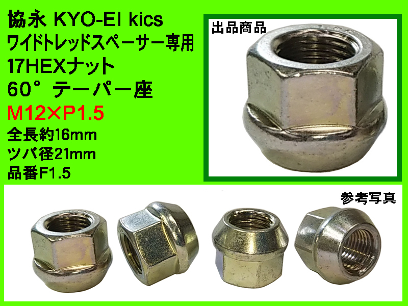 | 協永 Kics WTS 17HEX 60°テーパー座 M12×P1.5 全長約16mm ツバ径21mm ワイドトレッドスペーサー20mm・25mm・30mm厚 普通車 4WD用 スチール 日本製 1個 品番:F1.5 | |