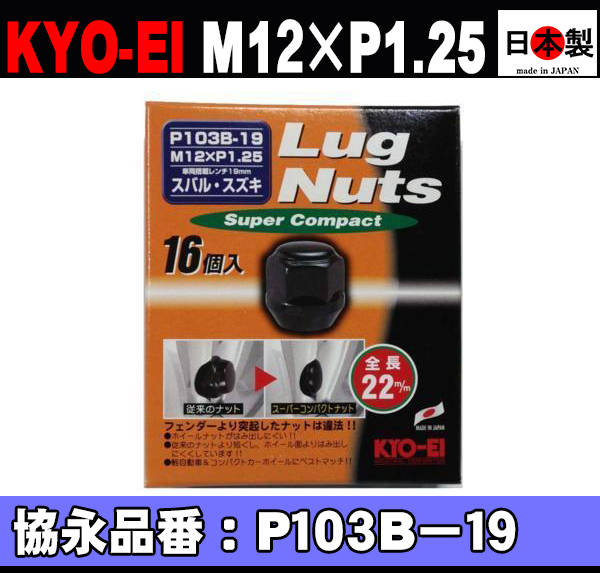 | 協永 KYO-EI ショート ブラック ラグナット スーパーコンパクト M12xP1.25 品番P103B-19 16個 ブラック ※スーパーコンパクト2014年デザイン変更後の現行デザインのタイプです。 | |||||||||||||||||||