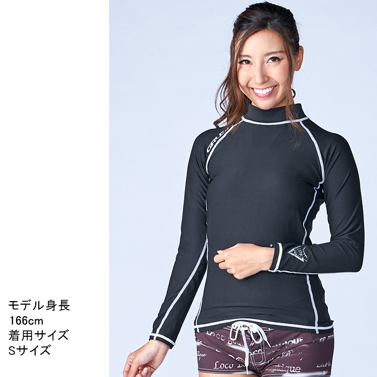 [ GRUSH ] ロングスリーブ ラッシュガード (ユニセックス)[ ブラック / ホワイトステッチ ]