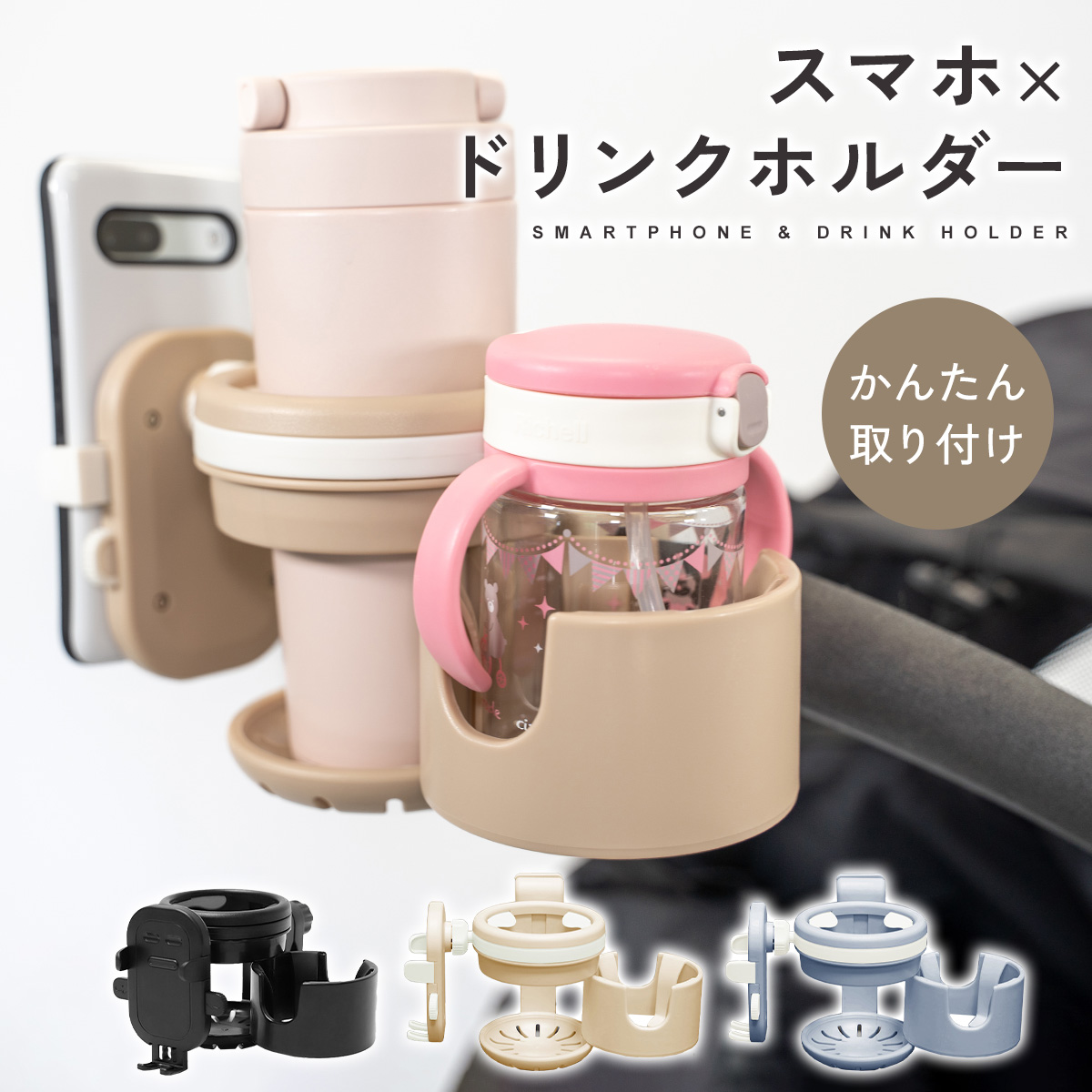 ドリンクホルダーが2か所あるので自分の水筒と赤ちゃんのマグ置き場に◎