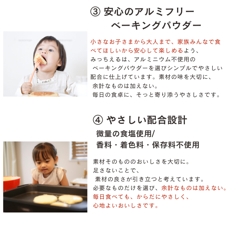 ふわふわ食感のパンケーキミックス。