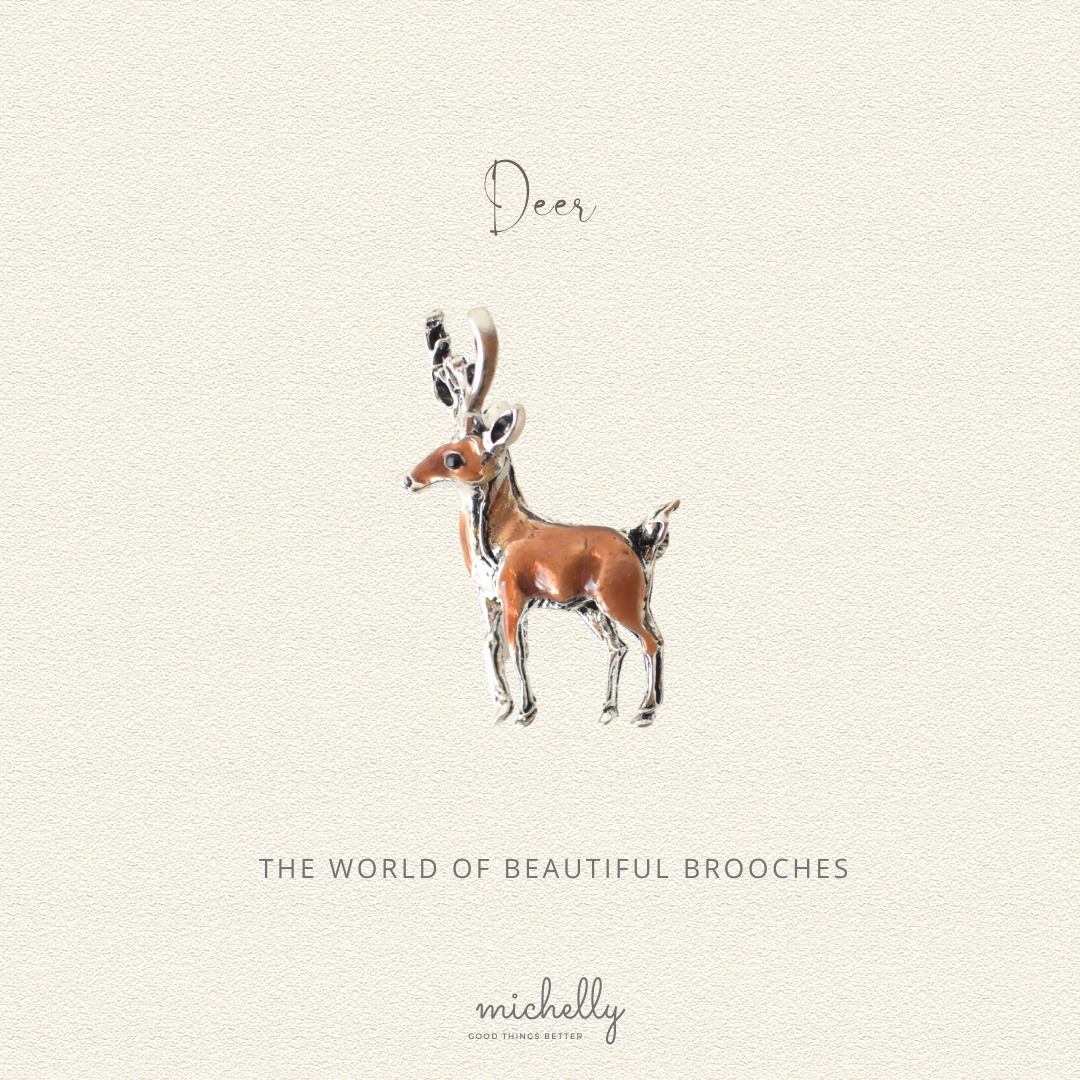 静かな森のなかに現れる、美しい鹿の姿をかたどったブローチ。