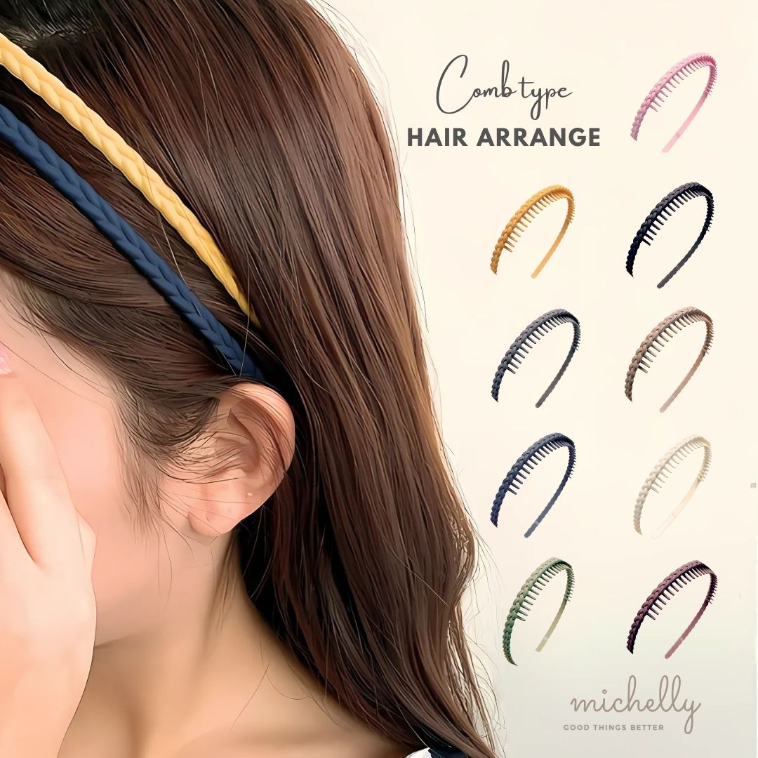 カチューシャ コーム 編み込み ヘアアクセサリー 前髪 ヘアアレンジ ブラック 黒 ホワイト 白 ネイビー 紺 グレー グリーン イエロー パープル ピンク シンプル おしゃれ 洗顔 10代 20代 30代 40代 50代 レディース 女の子 三つ編み ツイスト 細め