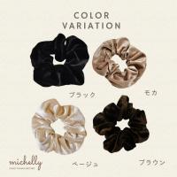 シュシュ ベロア コーデュロイ やわらか ツヤ ヘアゴム かわいい ヘアアレンジ ナチュラル 黒