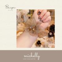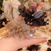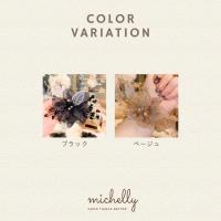 シュシュ フラワー ビーズ ワイヤー 葉っぱ ブラック 黒 ベージュ ゴールド 金 花 モチーフ シフォン チュール