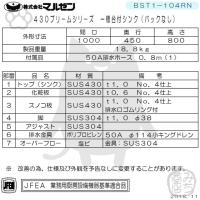 BST1-104RN マルゼン 1槽 一槽 台付 シンク 業務用 ステンレス 流し台 幅1000×奥行450×高さ800 バックガードなし 新品 別料金にて 設置 入替 回収 廃棄