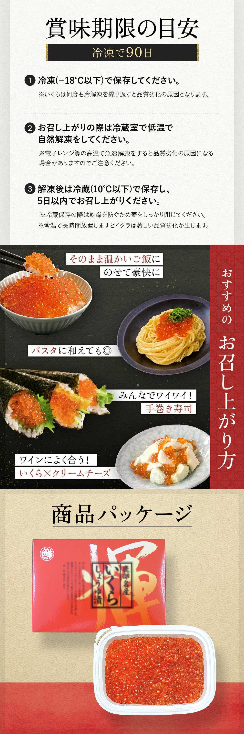 ※いくらは何度も冷解凍を繰り返すと品質劣化の原因となります。