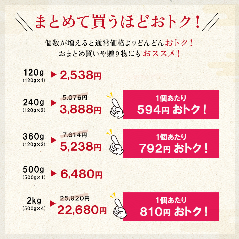 塩分も3.5〜4%(他社平均4〜6%)と低塩仕上げになっておりますので、塩分が気になる方にもお奨めです。