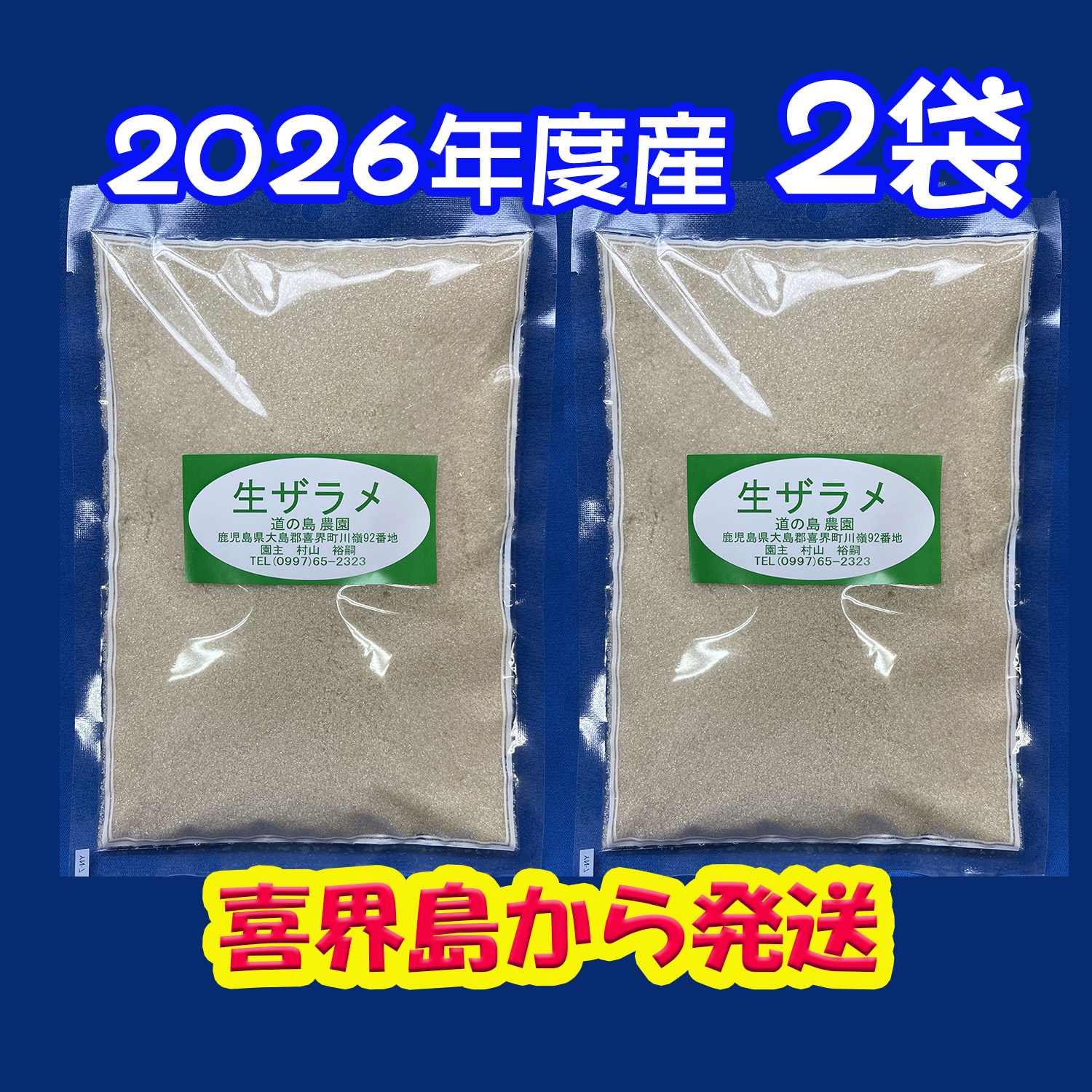 2026年度産 粗糖 生(ザラメ ざらめ) (500g)・「2袋入り」 1回・2セットまで 道の島農園 (きび砂糖 キビ砂糖 キビ糖 きび糖 さとうきび糖)