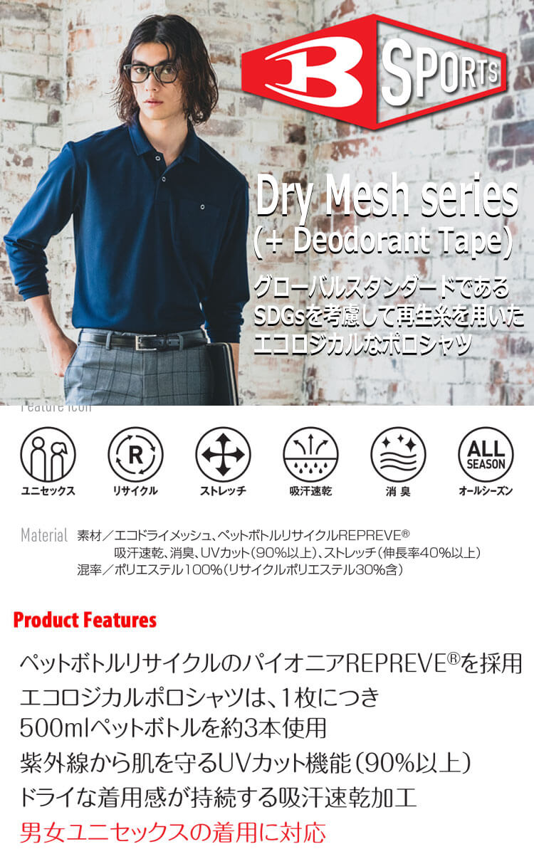 エコドライメッシュ、ペットボトルリサイクルREPREVE