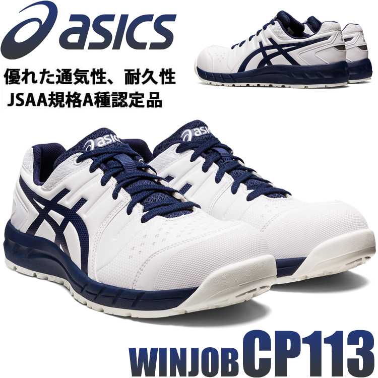 安全靴 アシックス asics スニーカー ウィンジョブ CP113 ホワイト×ピーコート JSAA規定A種認定品 セーフティシューズ 紐タイプ [即日発送]