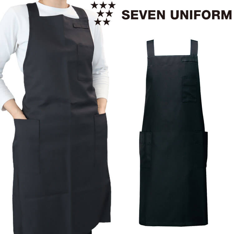 セブンユニフォーム 胸付エプロン ZT9508 黒 男女兼用 SEVEN UNIFORM 在庫限り 飲食業 物販 清掃業向け
