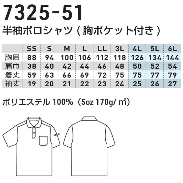 作業服 ジーグラウンド G.GROUND 半袖ポロシャツ(胸ポケット付き) 7325-51 桑和 SOWA 春夏 SS〜3Lサイズ