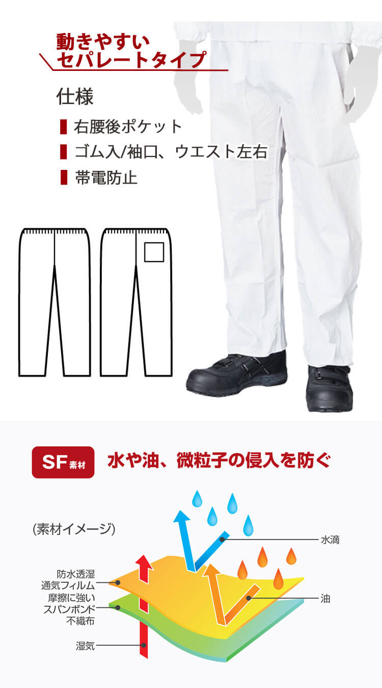 防護服 バリアーマン 防護服(ズボン) P3012 撥水 撥油 帯電防止