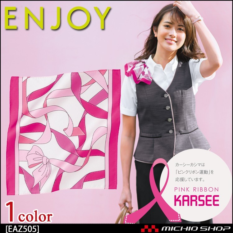事務服 制服 エンジョイ ミニスカーフ EAZ505 ピンクリボン カーシーカシマ