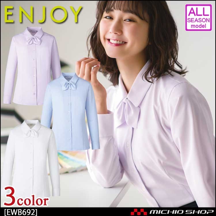 事務服 制服 ENJOY エンジョイ 長袖シャツブラウス リボン付 EWB692 カーシーカシマ