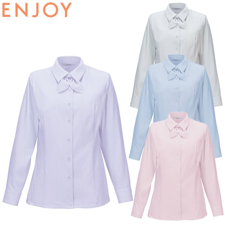 事務服 制服 ENJOY エンジョイ オフィス カーシーカシマ ストライプ リボン シャツブラウス(長袖) EWB876