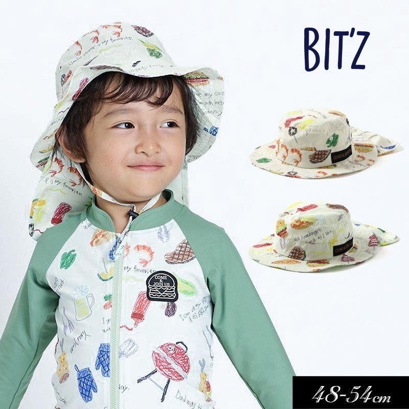 クレヨンで崩して描いたBBQのイラストが可愛い総柄の日よけハットです♪