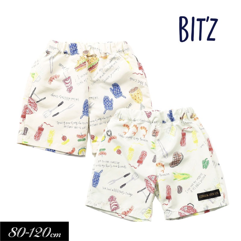 子供服 BIT'Z ビッツ みんなでBBQしたよ柄 トランクス 水着 UVカット キッズ 男の子 スイム 2025夏 爆買