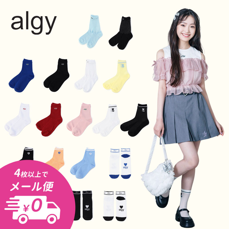 【4点でメール便送料無料】 ALGY アルジー ソックス 靴下 キッズ ジュニア 無地 カジュアル 女の子 クーポンご利用不可 2025夏