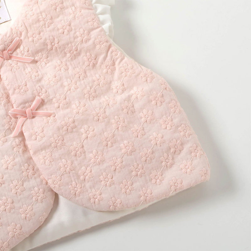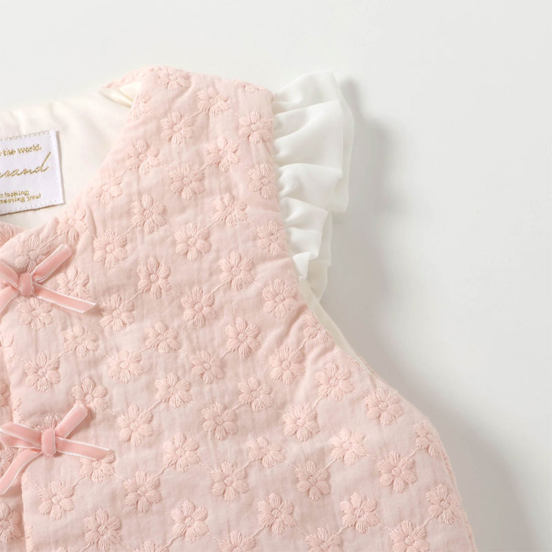 お花のレースとフリルをあしらったかわいいベビーベストです。