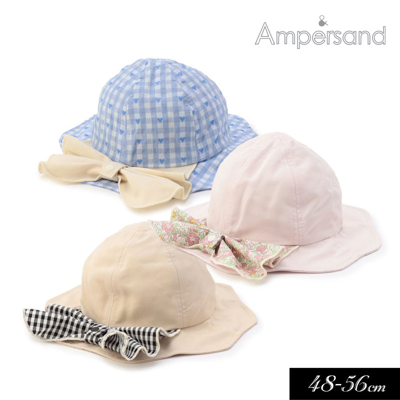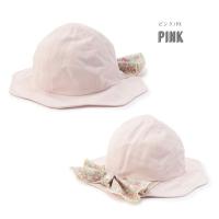 後ろに日よけが付いています。日よけ布をまとめてボタンで留めてリボンになる2WAYスタイル!!。