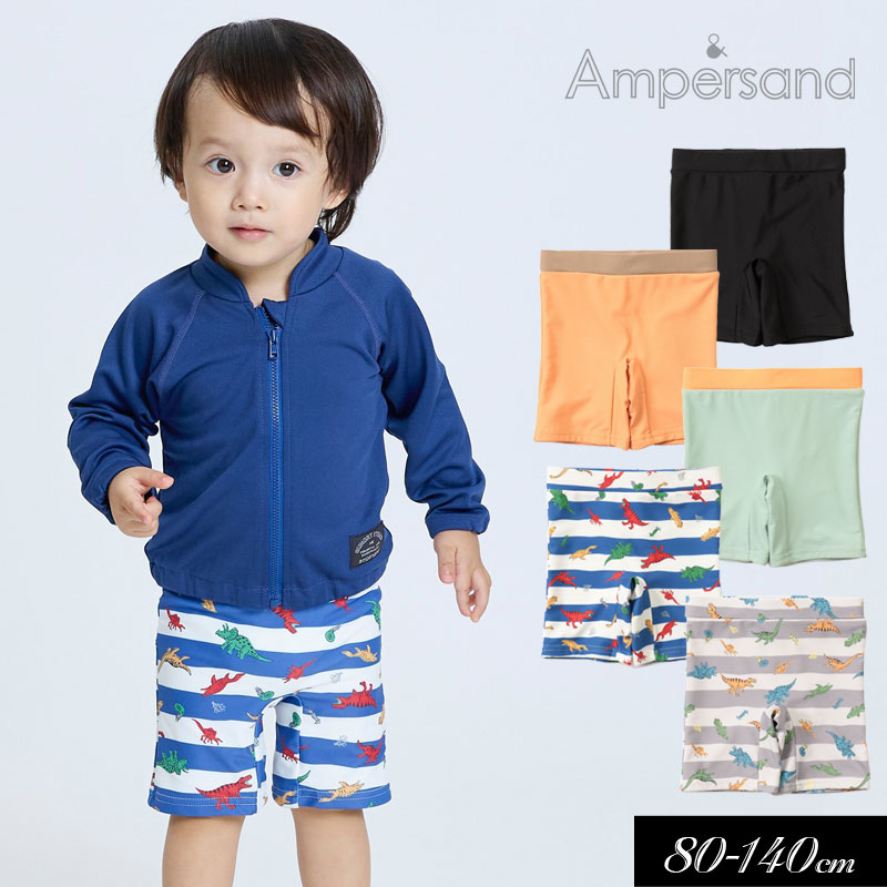 無地と恐竜ボーダー柄のかわいいボクサー水着です。