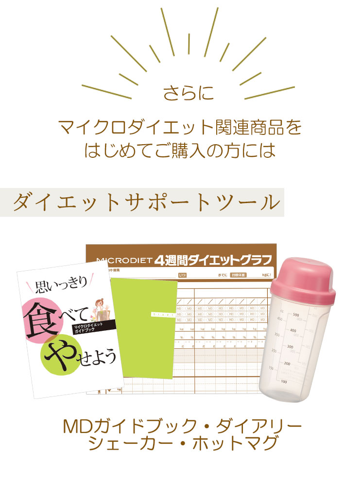 | 注意事項 | ※マイクロダイエットご使用上の注意※ ↑ご注文前に必ずお読みください! 【お客様が入力された内容に関して、サニーヘルスからご連絡をさせて頂く場合がございます。】 ※ マイクロダイエットを初めて注文される方にはシェイカーはもれなく付きますのでチェックの必要はございません。 (シェイカーはお一人様1個、初回購入の方のみの特典となります。) ※本品の類似商品にご注意下さい。 |