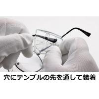 ※着脱の際、力を入れすぎるとテンプル(つる)に傷が付くことがあります。また、個人で使用のめがねには着脱が激しい場合は傷が付くことがありますのでご注意ください。