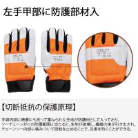 左手甲部にクラス1の防護機能を搭載のチェーンソー用防護手袋