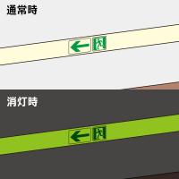 ●高輝度蓄光テープに「補助ステッカー」を貼り付ける事で、より明確に避難口へ誘導することができます。