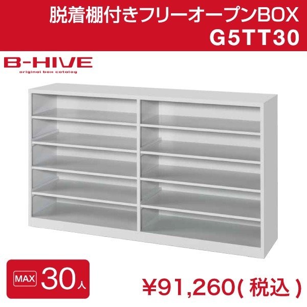 脱着棚付きフリーオープンボックス 30人用 30足用 G5TT30 B-HIVE 業務用下駄箱 シューズボックス 収納棚