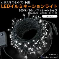 【製品仕様】 ■製品名:M-TR200Lシリーズ ■商品内容:LEDイルミネーション200球ストレートタイプメモリー機能内蔵コントローラー付 ■サイズ:(全長)約20m ■配線ケーブルカラー:ボトルグリーン ■電源:AC100V 50/60Hz 7W ■付属品:取り扱い注意書 ■生産国:中国 ■ブランド:AD&CTORONIC ■パッケージ:化粧箱
