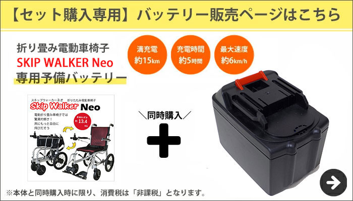 電動 折り畳み 車いす SKIP WALKER Neo スキップウォーカー ネオ 専用予備バッテリー 送料無料