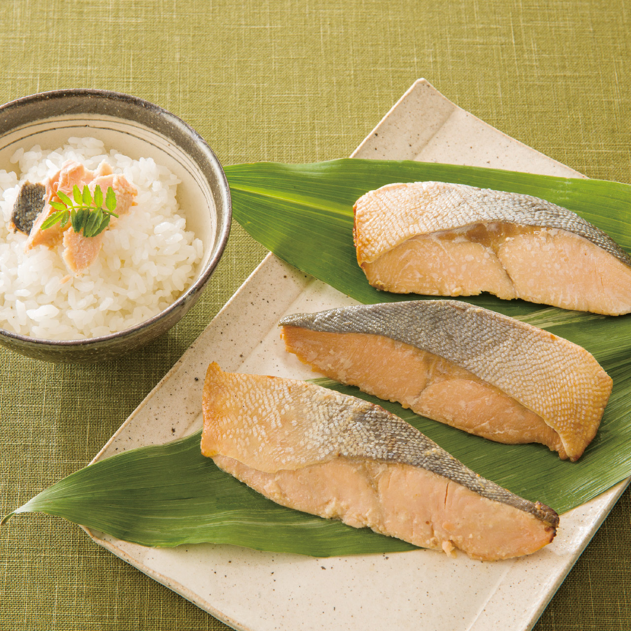 ■商品詳細:焼鮭切身30g・鮭照り焼切身30g各2本・鮭の味噌焼切身30g×1本